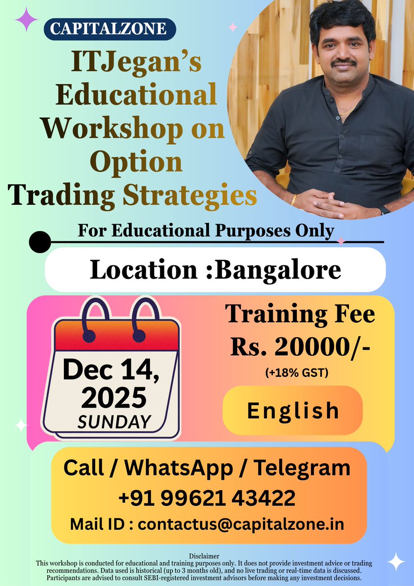 Join our educational workshop to understand the structure and functioning of the Indian derivatives market — with a special focus on NSE and BSE Indices. The program is designed to enhance participants’ understanding of price action, trends, and chart patterns, enabling informed and disciplined trading decisions.